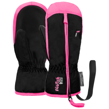 Wyprzedaż - Rękawice zimowe dziecięce Reusch Ben Mitten z paskiem na nadgarstek ocieplane wodoodporne czarno-różowe (62/85/408/7769)