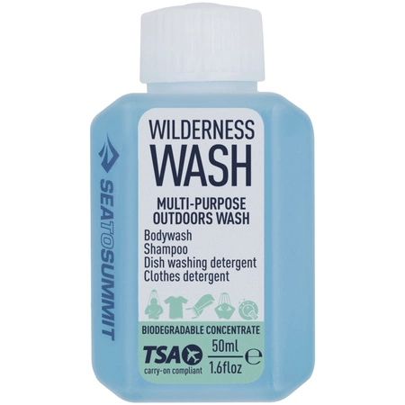SEA TO SUMMIT Wilderness Wash Sky Blue (AWWW/UNI) to niezastąpiony płyn do mycia dla każdego miłośnika przygód na świeżym powietrzu. Łączy w sobie skuteczność, bezpieczeństwo i troskę o środowisko. Niezależnie od tego, czy wybierasz się w góry, nad jezioro czy na drugi koniec świata – ten kompaktowy, biodegradowalny detergent zapewni Ci czystość i komfort w każdych warunkach.