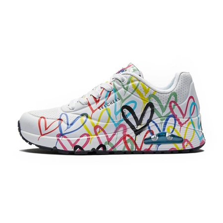 Sneakersy damskie na lato Skechers X JGoldcrown Uno - Highlight Love serduszka białe (177981-WMLT)