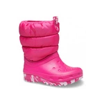 Śniegowce dziecięce Crocs Classic Neo Puff Boot T zimowe buty dla dzieci ortalionowe różowe (207683-PINK)